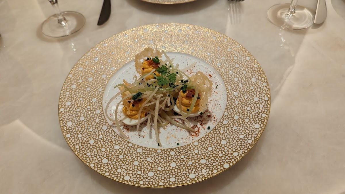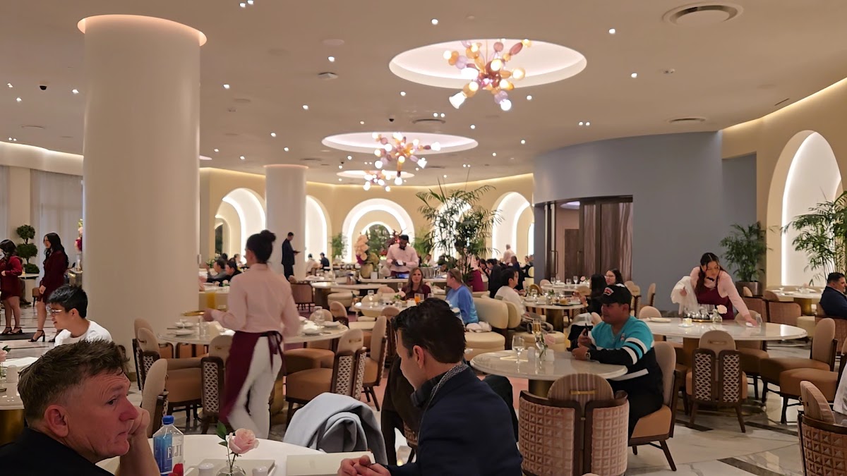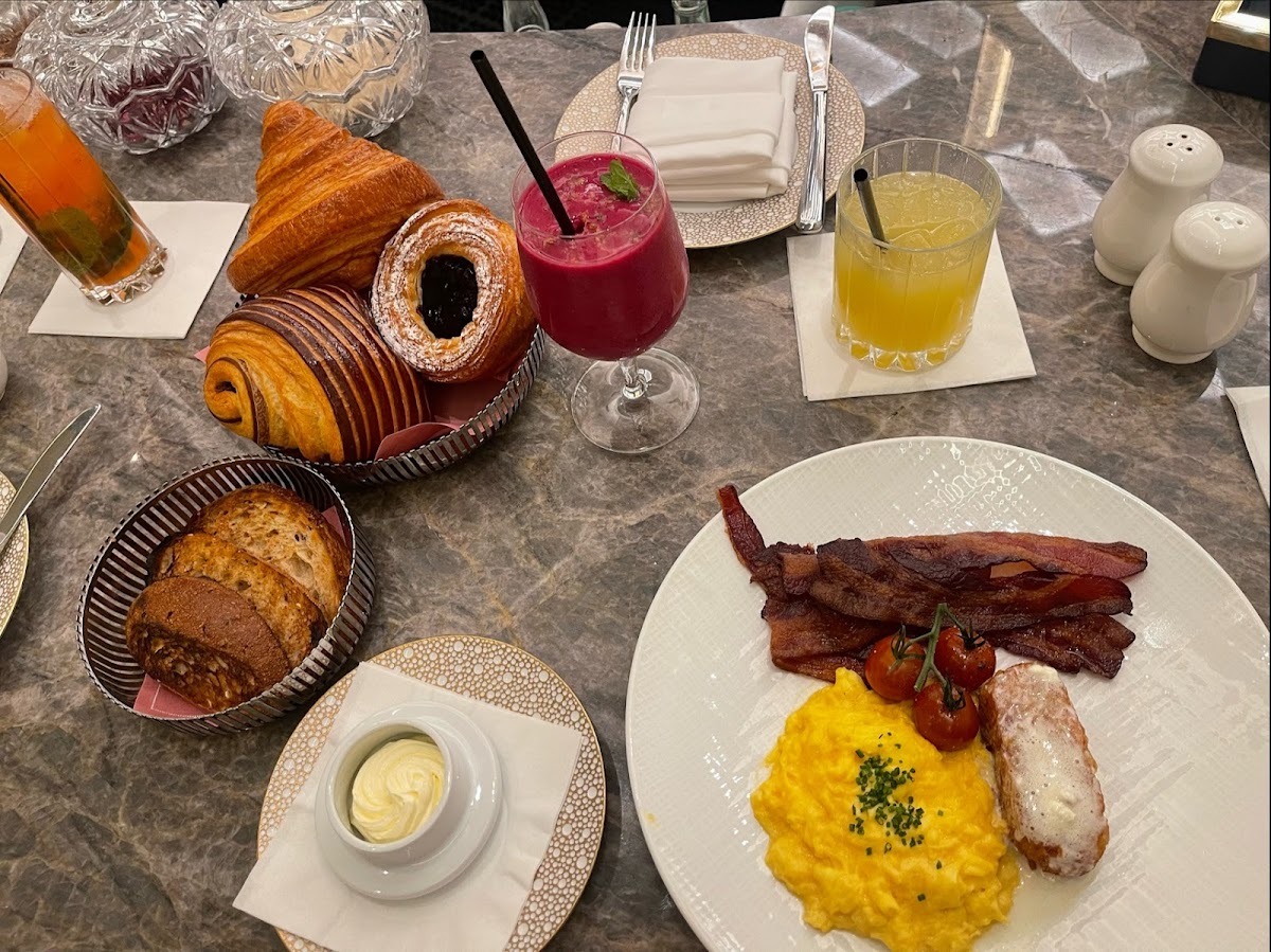 I went to La Fontaine at the new Fontainebleau Las Vegas for brunch on a Saturday morning. We had a reservation and still waited a few minutes to be seated, but nothing terrible. The restaurant itself is absolutely gorgeous — beautifully decorated, elegant, and feels brand new. Very luxurious atmosphere! We ordered the pancakes and the eggs Benedict, along with coffees. Unfortunately, after waiting over 45 minutes, our food still hadn’t arrived. When we asked about it, the manager came by and explained they had actually run out of eggs, which was pretty surprising for a place like this. To make up for it, the manager offered us a basket of pastries while we waited — a really nice gesture since we were starving by then. The pain au chocolat and croissant were both excellent (and I say that as a French woman with high standards for pastries!). Eventually, our food arrived and it was good, with generous portions. But what truly stood out was the atmosphere and décor — the space is stunning and makes the experience feel special. To be fair, the manager handled the situation very professionally, even removing a couple of charges from our bill to apologize for the delay. Overall, despite the hiccup, I’d still come back and would recommend La Fontaine to anyone looking for a classy, elegant brunch spot in Vegas.