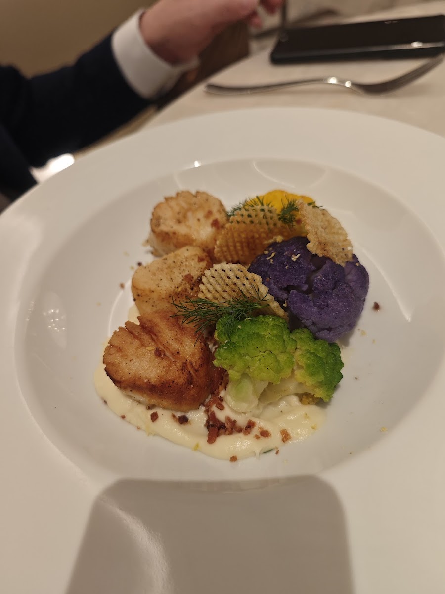 Came for a late Sunday lunch—the restaurant is beautiful inside, loved their decor! Our server Julio is awesome—friendly and attentive. Food was great! Enjoyed the Escargots, Cobb Salad and Caesar Salad for starters. Also got the Caviar Bagel Tower—can’t go wrong with caviar, so delicious! The Chicken BLT and Grilled Salmon were good—didn’t realize the additional avocado request for our BLT was $12. For dessert, hubby was given a small piece of chocolate cake with a candle, to celebrate his birthday! We noticed it was closing time but were never felt rushed, really appreciated that.