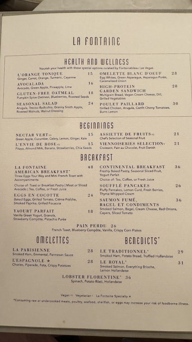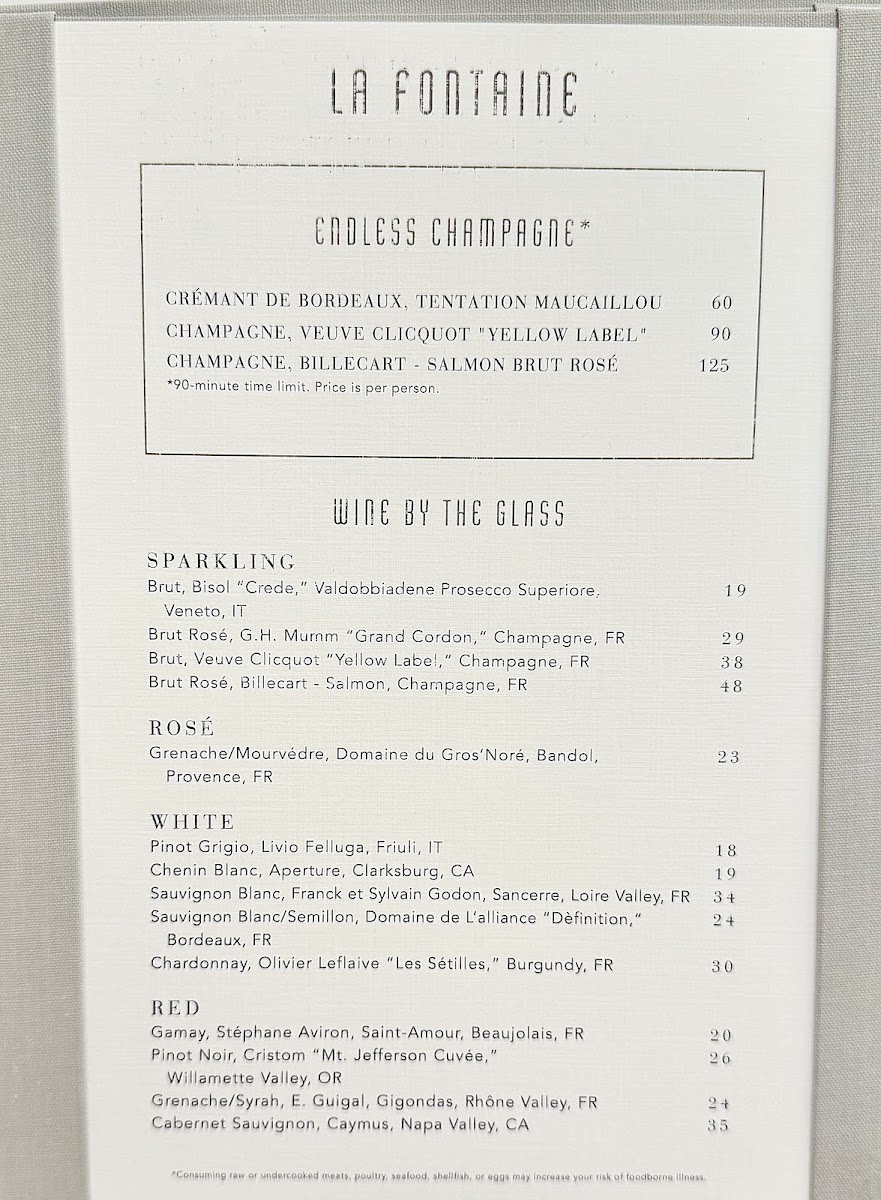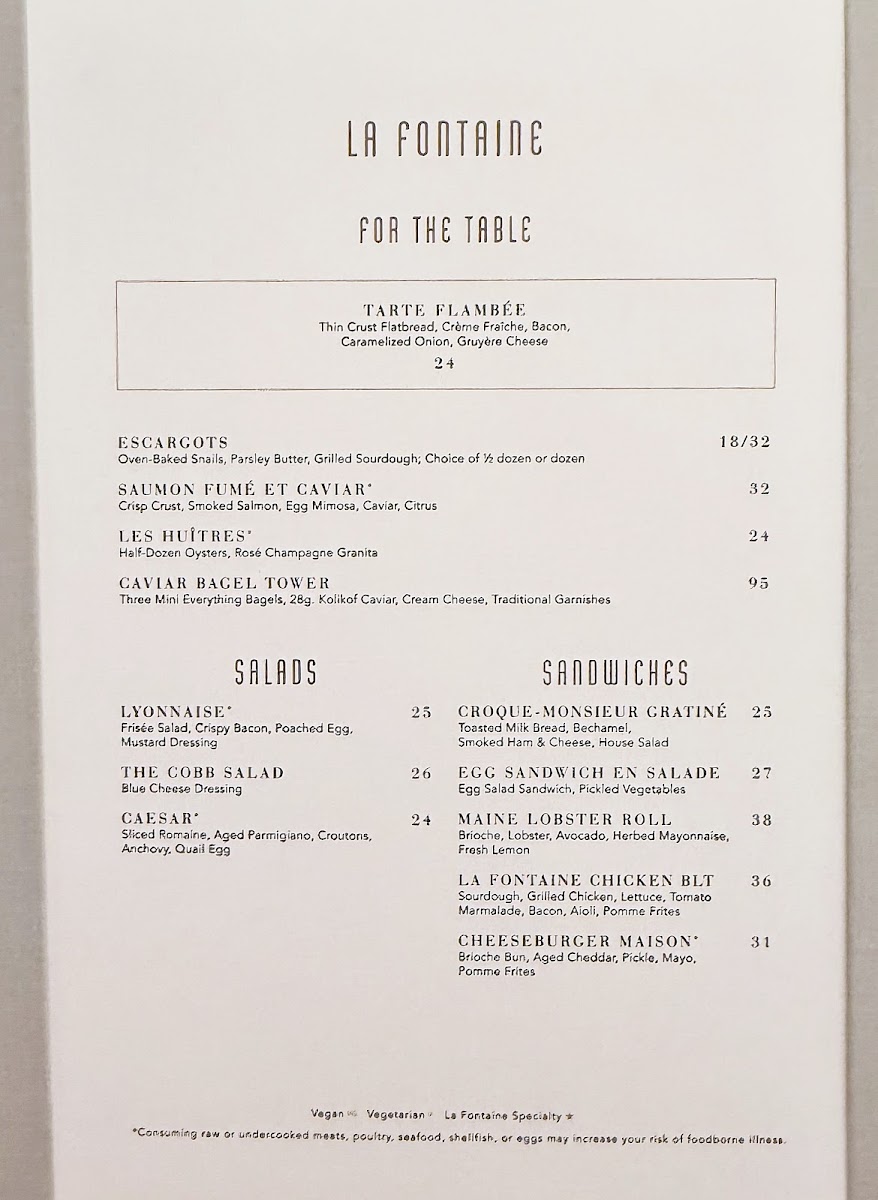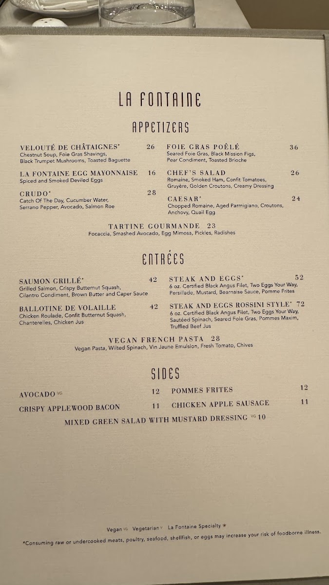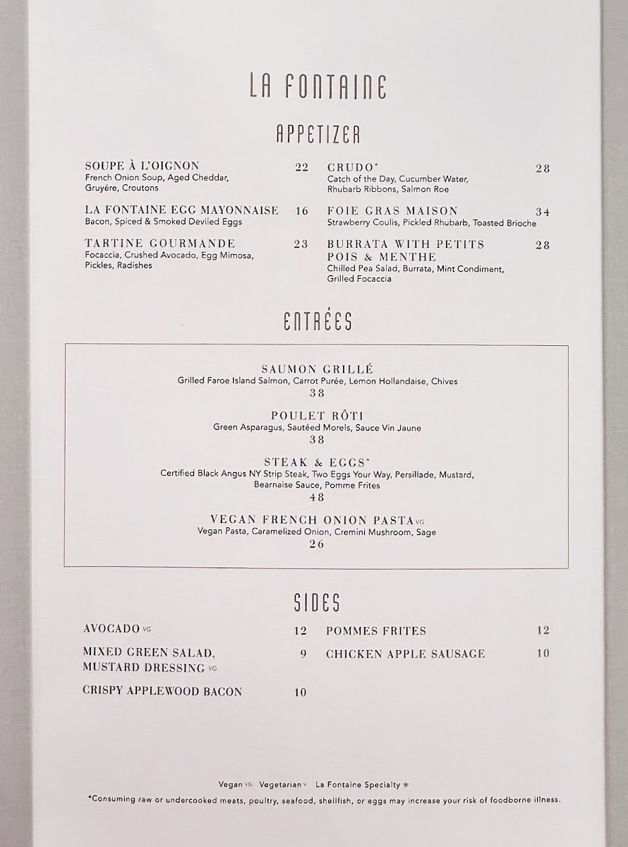 La Fontaine Menu