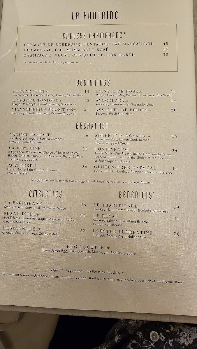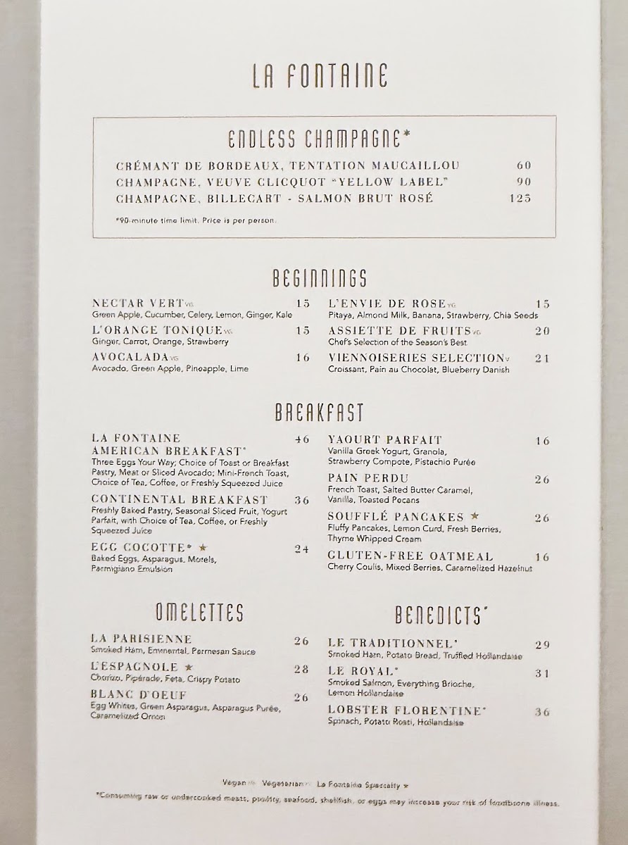 La Fontaine offers a thoughtfully curated menu that balances classic French charm with approachable, satisfying dishes. The menu leans towards refined café-style fare, featuring a variety of light breakfast options, elegant brunch plates, and comforting beverages that align well with the restaurant’s stylish yet relaxed atmosphere.